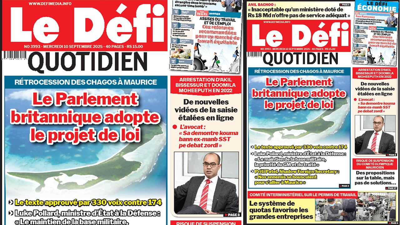 Voici la une du Défi Quotidien de ce Mercredi 10 Septembre 2025