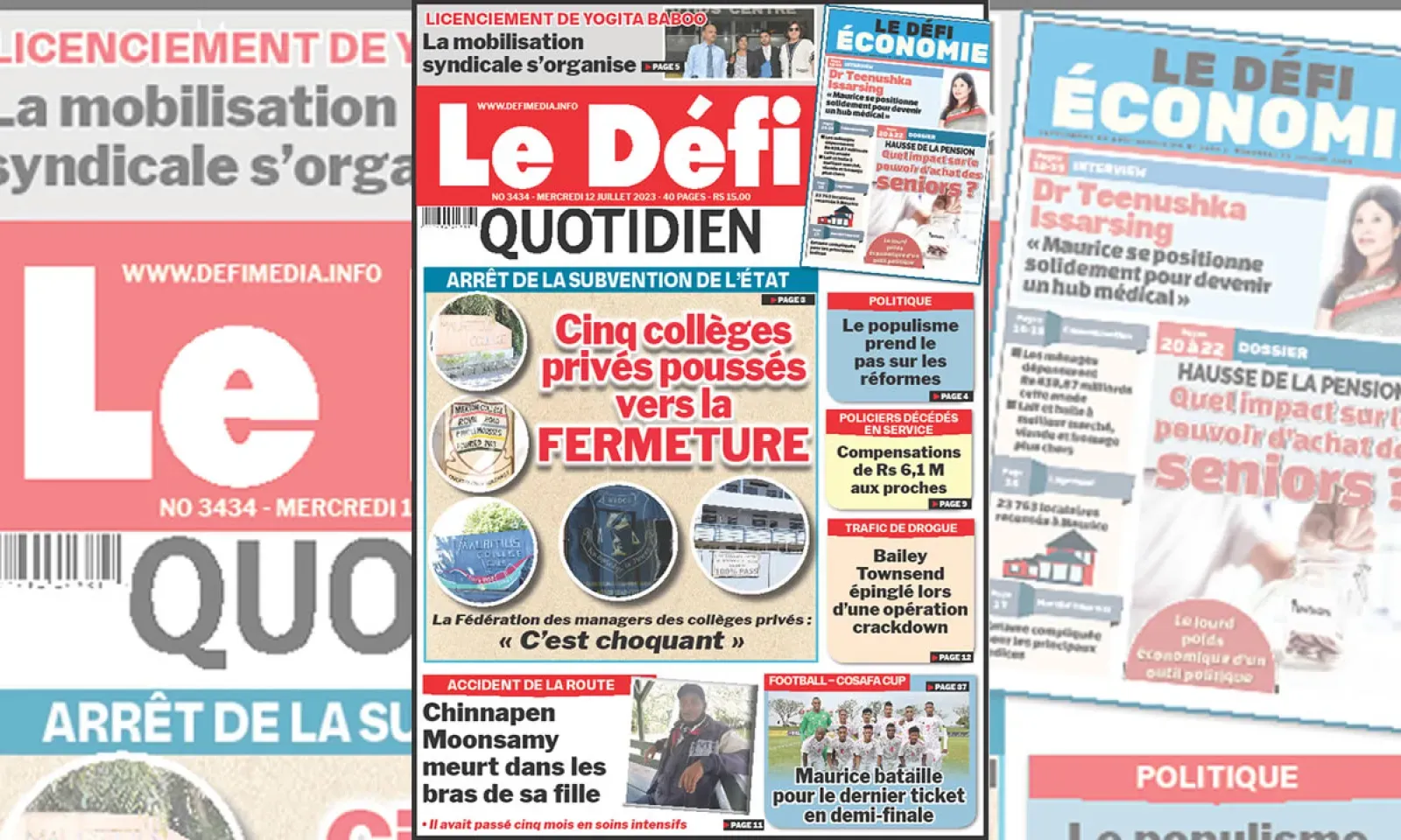 ? Voici la Une du Défi Quotidien. Le journal est en vente à Rs 15 l'exemplaire aux endroits habituels (supermarchés, boutiques, tabagies, superettes). Bonne lecture !