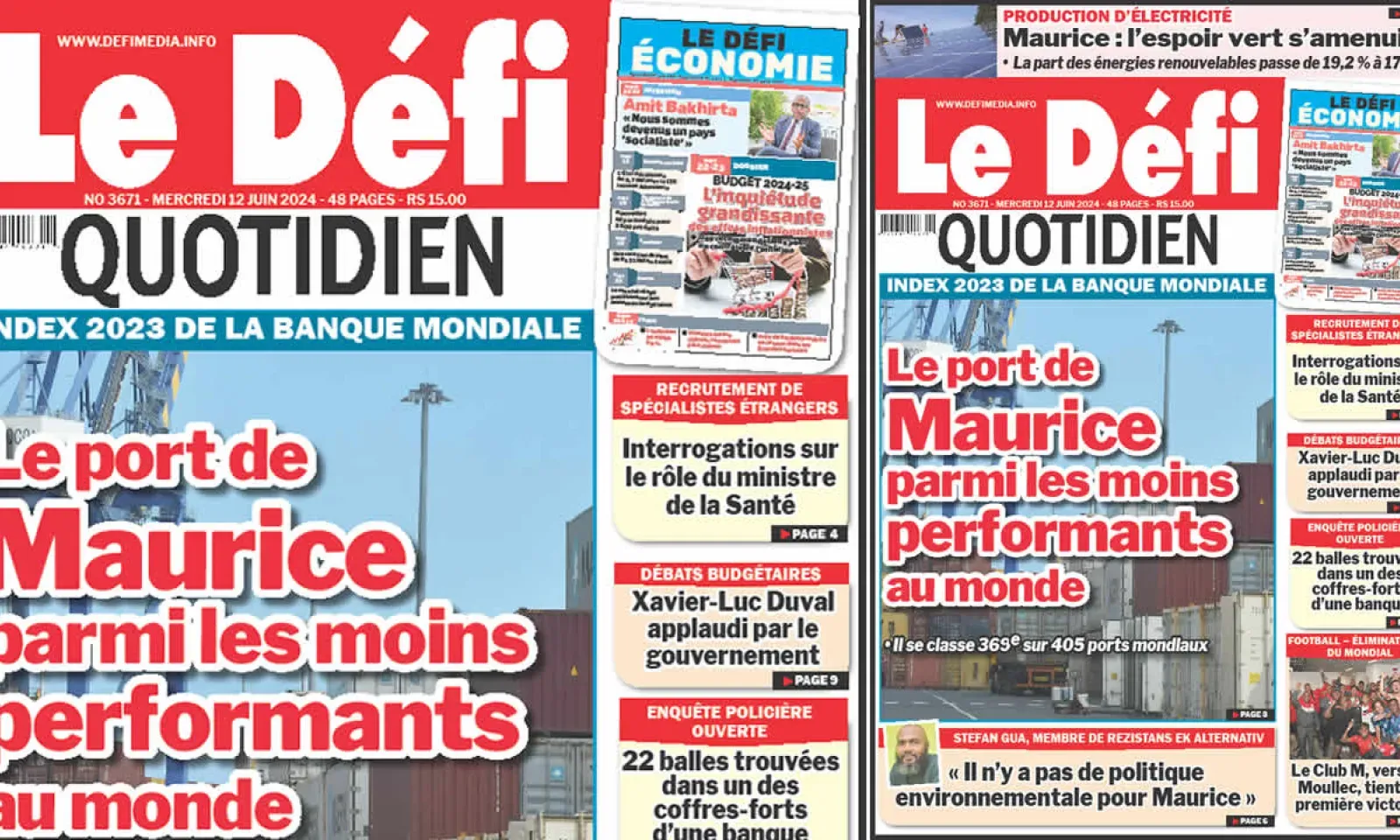 ? Voici la Une du Défi Quotidien. Le journal est en vente à Rs 15 l'exemplaire aux endroits habituels (supermarchés, boutiques, tabagies, superettes). Bonne lecture !