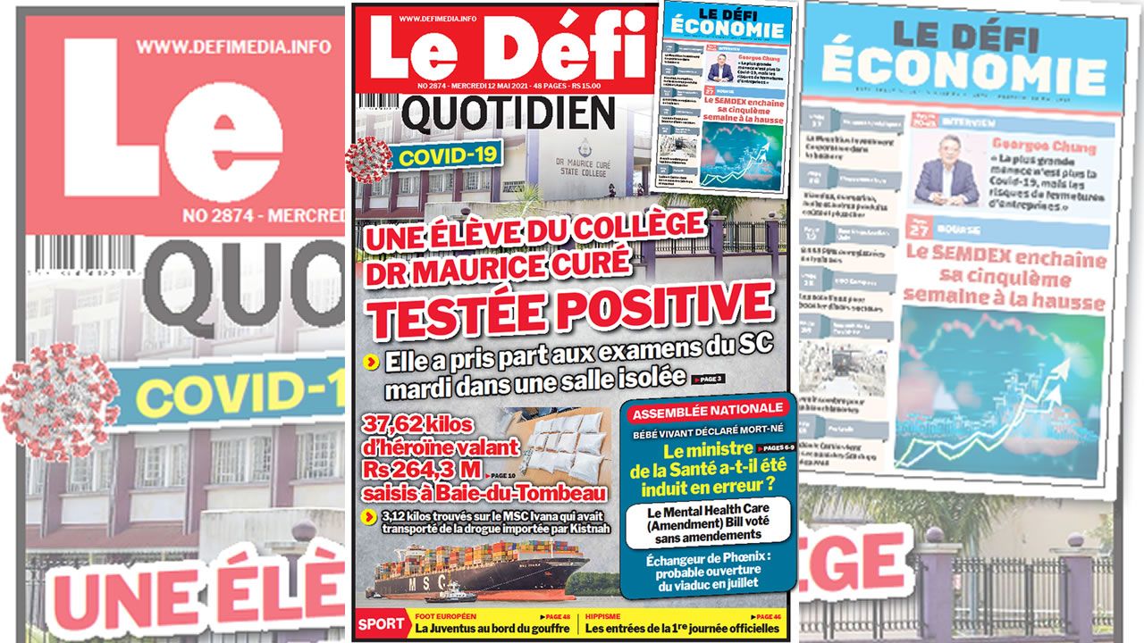 ? Voici la Une du Défi Quotidien. Le journal est en vente à Rs 15 l'exemplaire aux endroits habituels (supermarchés, boutiques, tabagies, superettes). Bonne lecture !