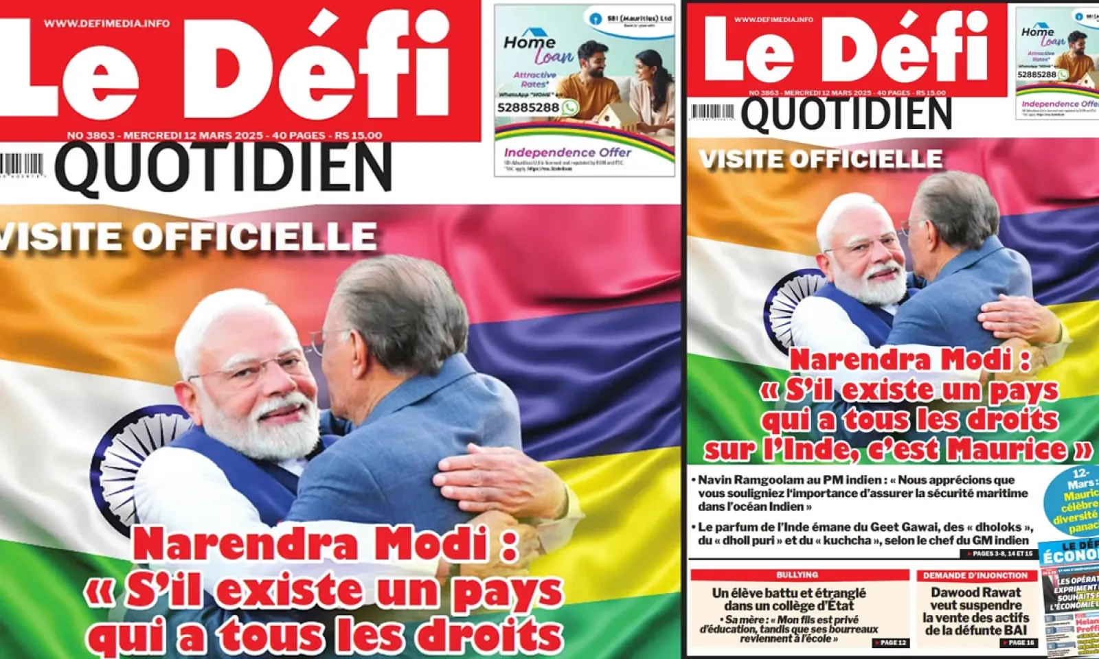? Voici la Une du Défi Quotidien. Le journal est en vente à Rs 15 l'exemplaire aux endroits habituels (supermarchés, boutiques, tabagies, superettes). Bonne lecture !