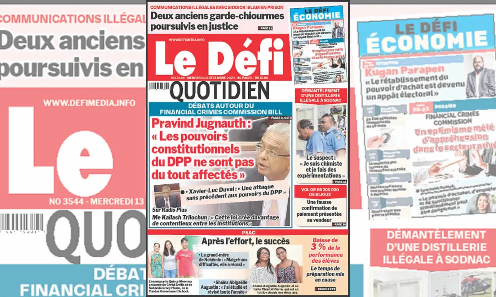 ? Voici la Une du Défi Quotidien. Le journal est en vente à Rs 15 l'exemplaire aux endroits habituels (supermarchés, boutiques, tabagies, superettes). Bonne lecture !