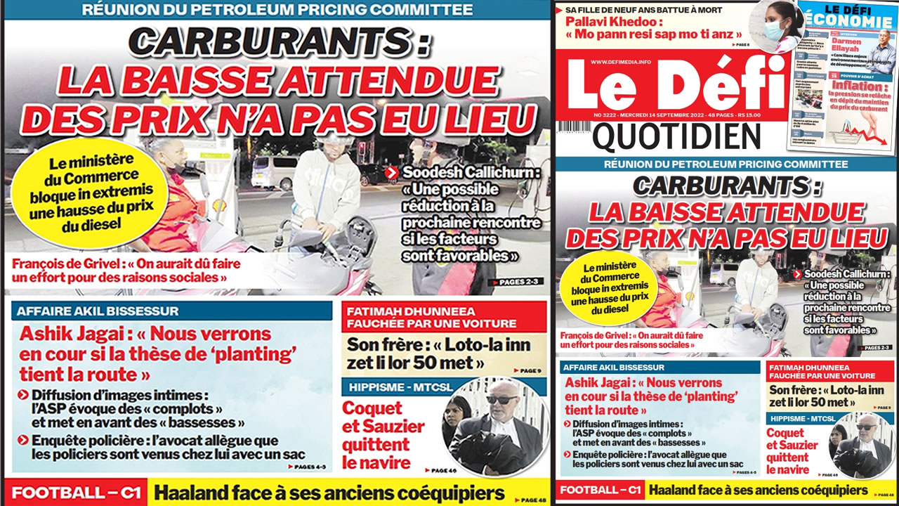 ? Voici la Une du Défi Quotidien. Le journal est en vente à Rs 15 l'exemplaire aux endroits habituels (supermarchés, boutiques, tabagies, superettes). Bonne lecture !