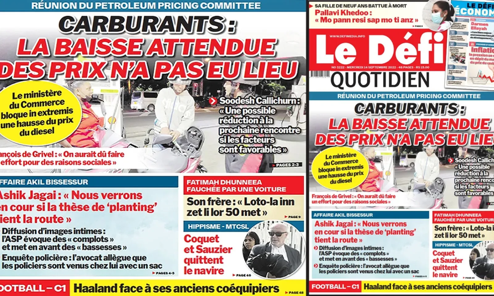 Voici la une du Défi Quotidien de ce mercredi 14 Septembre 2022
