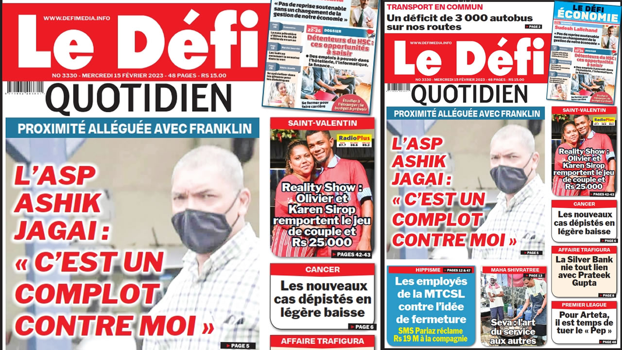 ? Voici la Une du Défi Quotidien. Le journal est en vente à Rs 15 l'exemplaire aux endroits habituels (supermarchés, boutiques, tabagies, superettes). Bonne lecture !