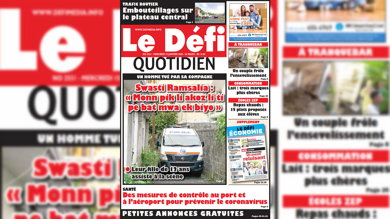 Voici la Une du Défi Quotidien de ce mercredi 15 janvier 2020