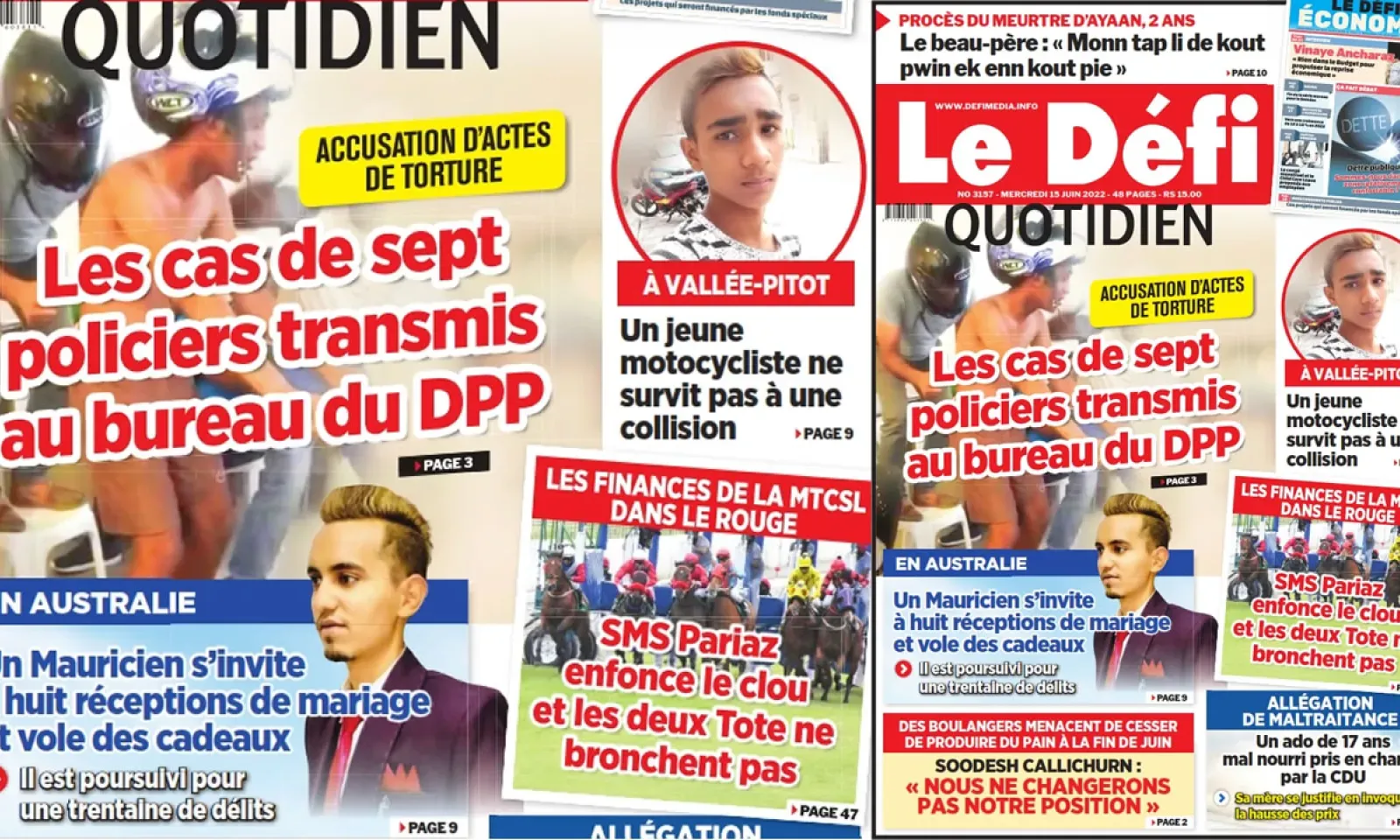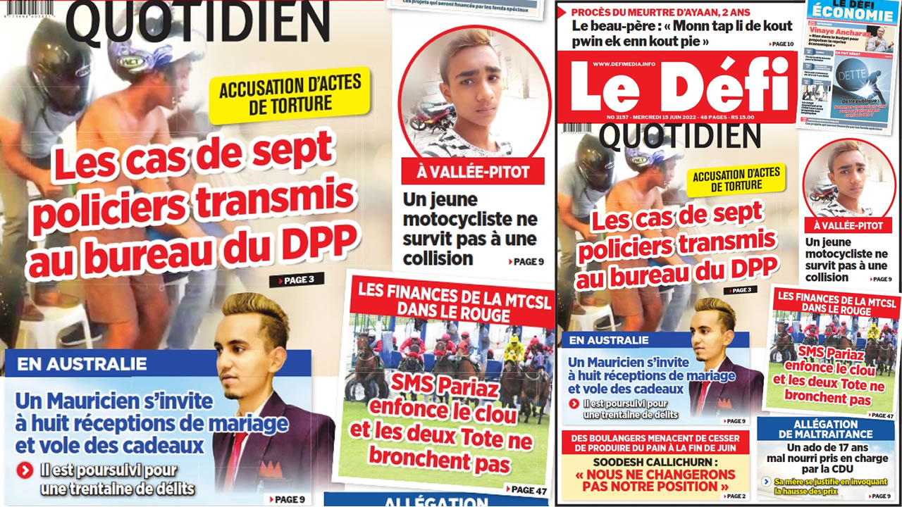 ? Voici la Une du Défi Quotidien. Le journal est en vente à Rs 15 l'exemplaire aux endroits habituels (supermarchés, boutiques, tabagies, superettes). Bonne lecture !