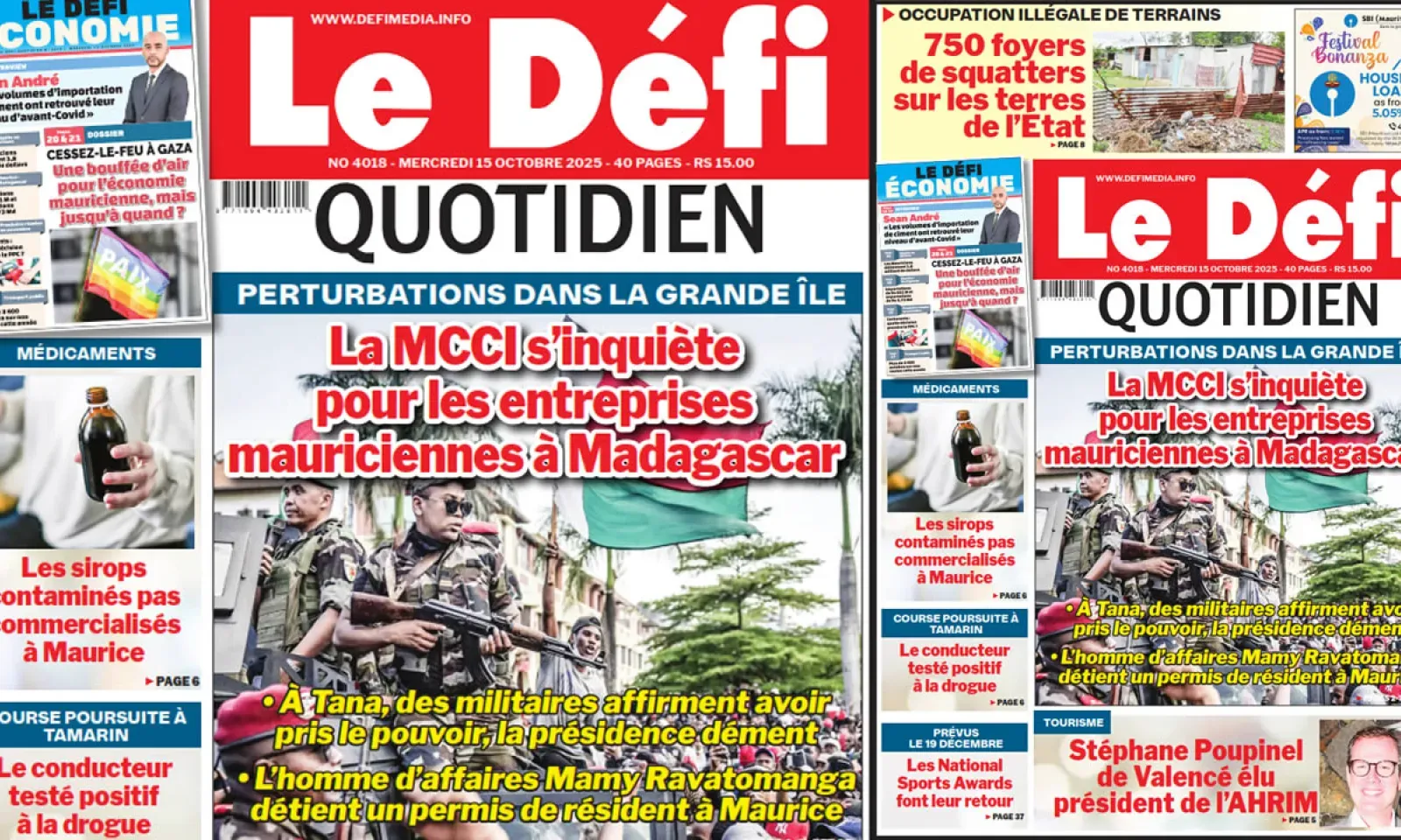 ? Voici la Une du Défi Quotidien. Le journal est en vente à Rs 15 l'exemplaire aux endroits habituels (supermarchés, boutiques, tabagies, superettes). Bonne lecture !