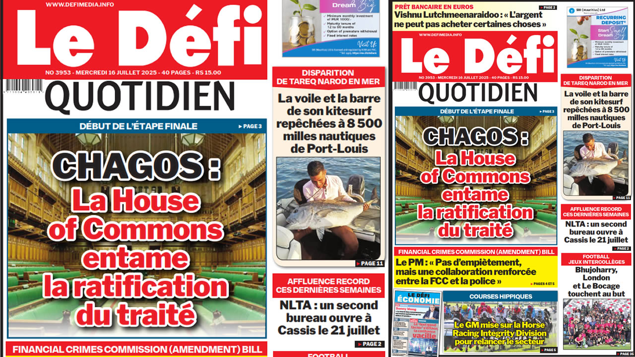 ? Voici la Une du Défi Quotidien. Le journal est en vente à Rs 15 l'exemplaire aux endroits habituels (supermarchés, boutiques, tabagies, superettes). Bonne lecture !