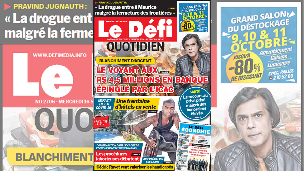 Voici la Une du Défi Quotidien de ce mercredi 16 Septembre 2020