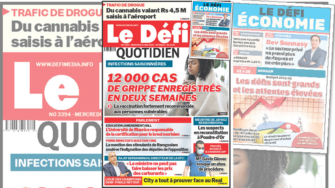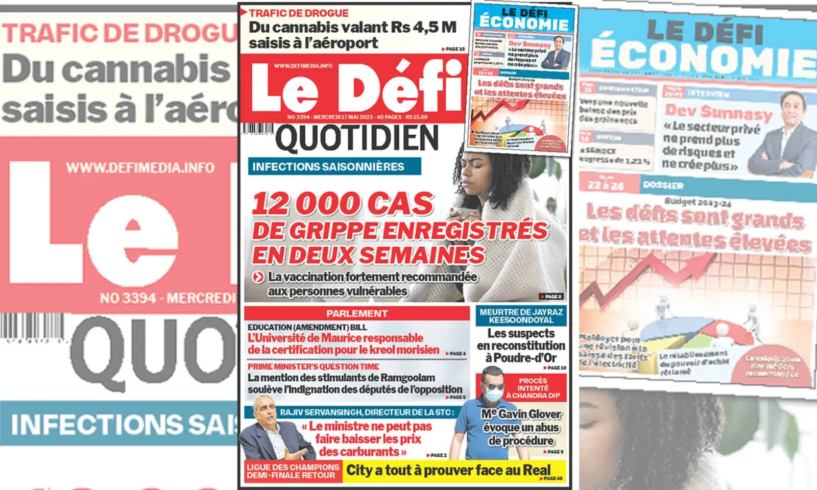 ? Voici la Une du Défi Quotidien. Le journal est en vente à Rs 15 l'exemplaire aux endroits habituels (supermarchés, boutiques, tabagies, superettes). Bonne lecture !