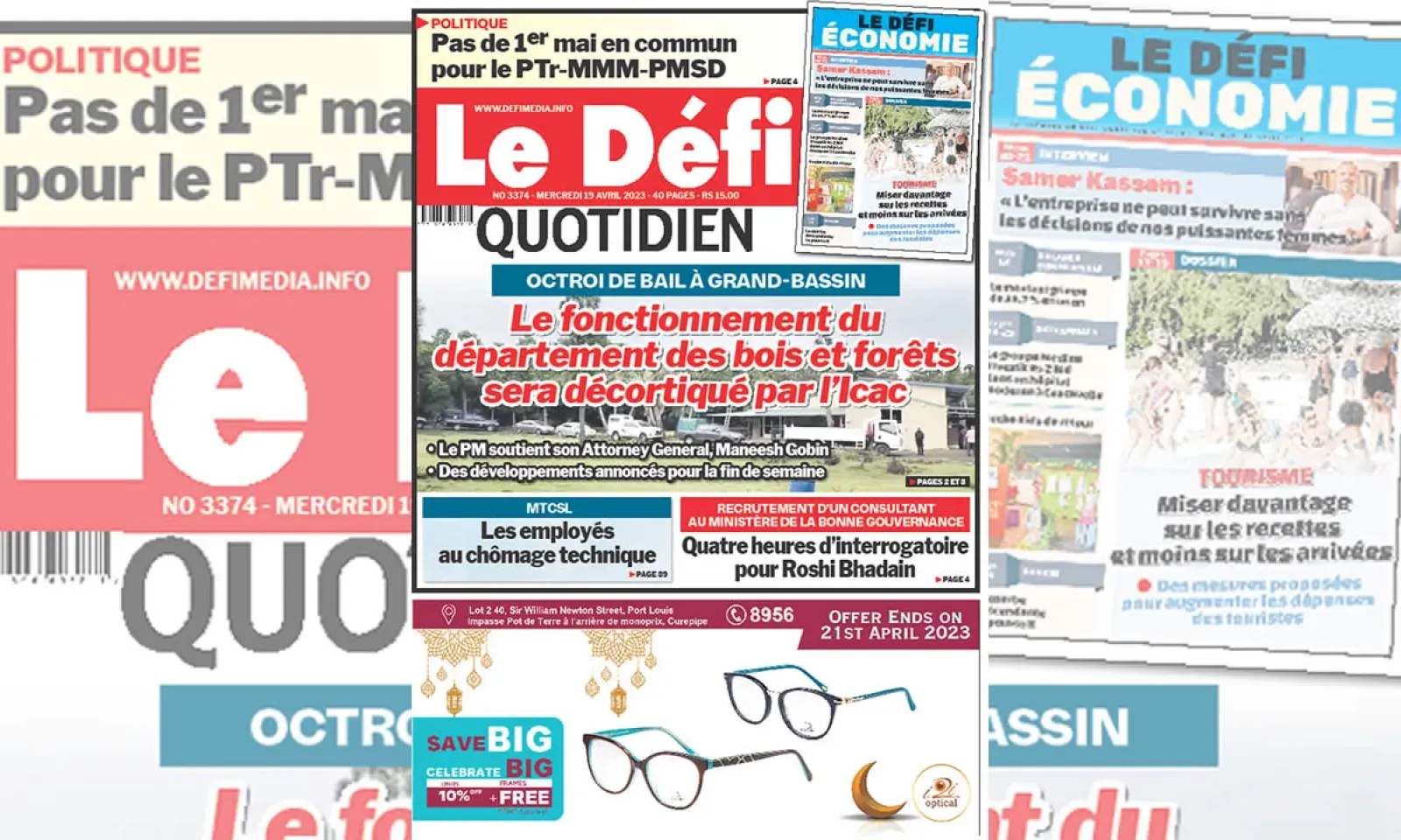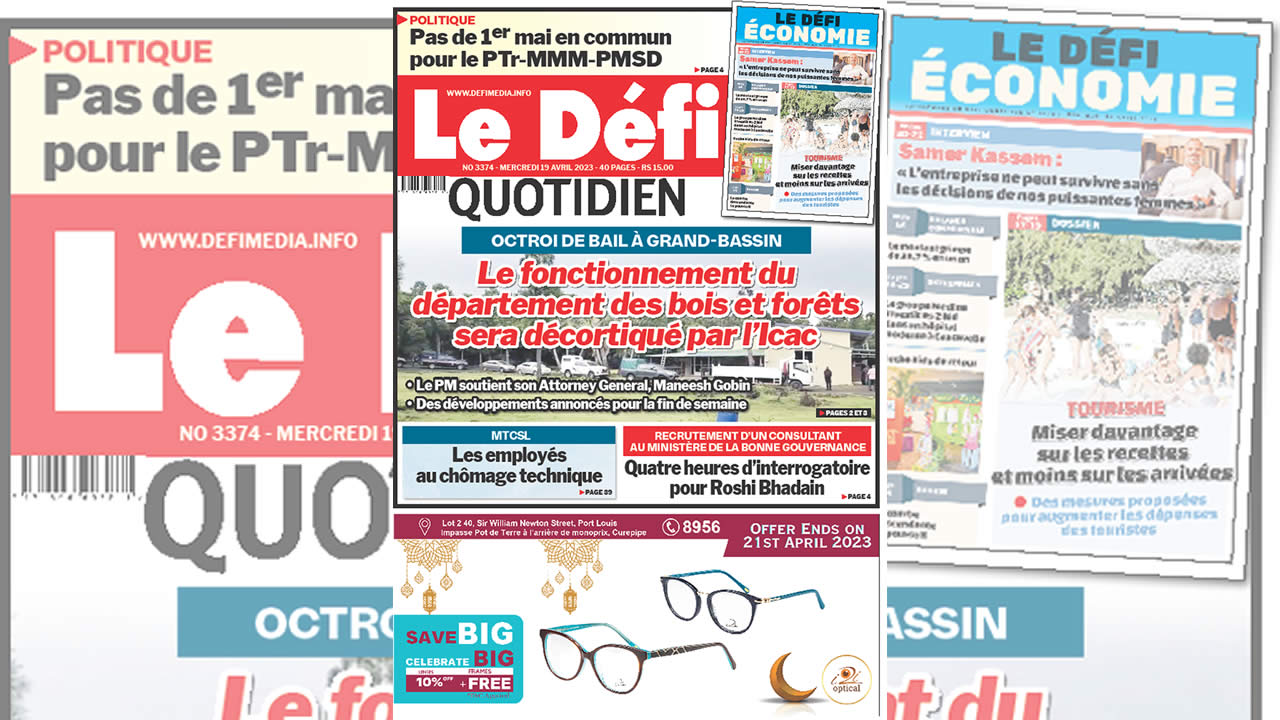 ? Voici la Une du Défi Quotidien. Le journal est en vente à Rs 15 l'exemplaire aux endroits habituels (supermarchés, boutiques, tabagies, superettes). Bonne lecture !