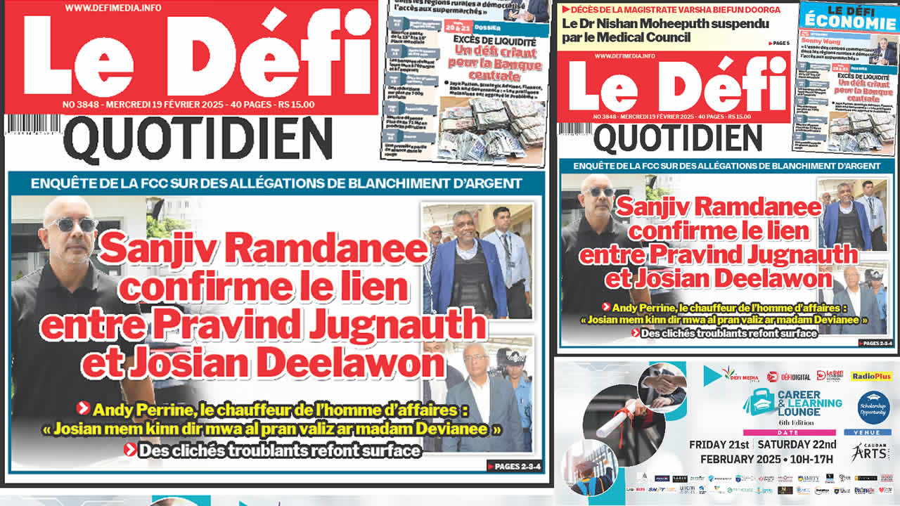 ? Voici la Une du Défi Quotidien. Le journal est en vente à Rs 15 l'exemplaire aux endroits habituels (supermarchés, boutiques, tabagies, superettes). Bonne lecture !