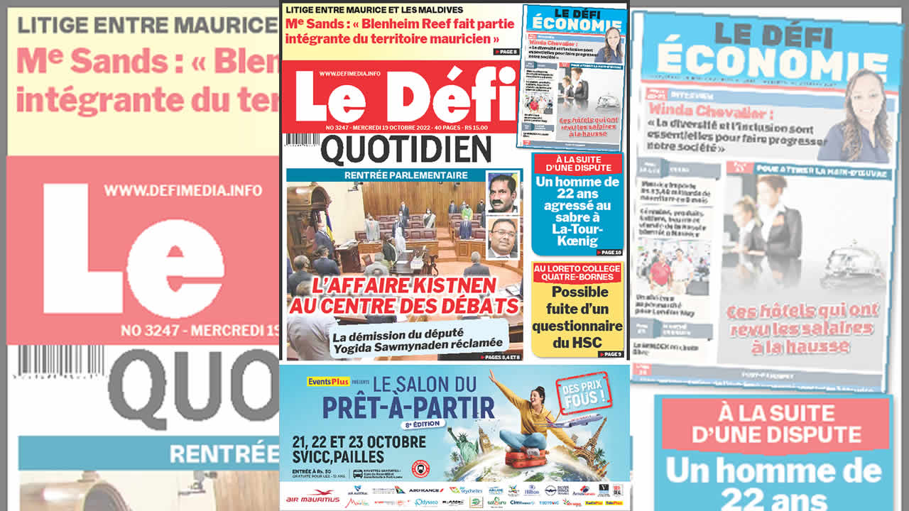 ? Voici la Une du Défi Quotidien. Le journal est en vente à Rs 15 l'exemplaire aux endroits habituels (supermarchés, boutiques, tabagies, superettes). Bonne lecture !