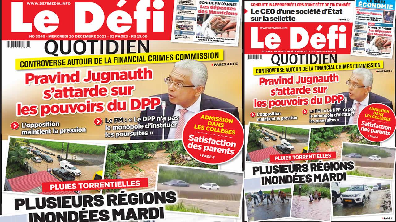 ? Voici la Une du Défi Quotidien. Le journal est en vente à Rs 15 l'exemplaire aux endroits habituels (supermarchés, boutiques, tabagies, superettes). Bonne lecture !