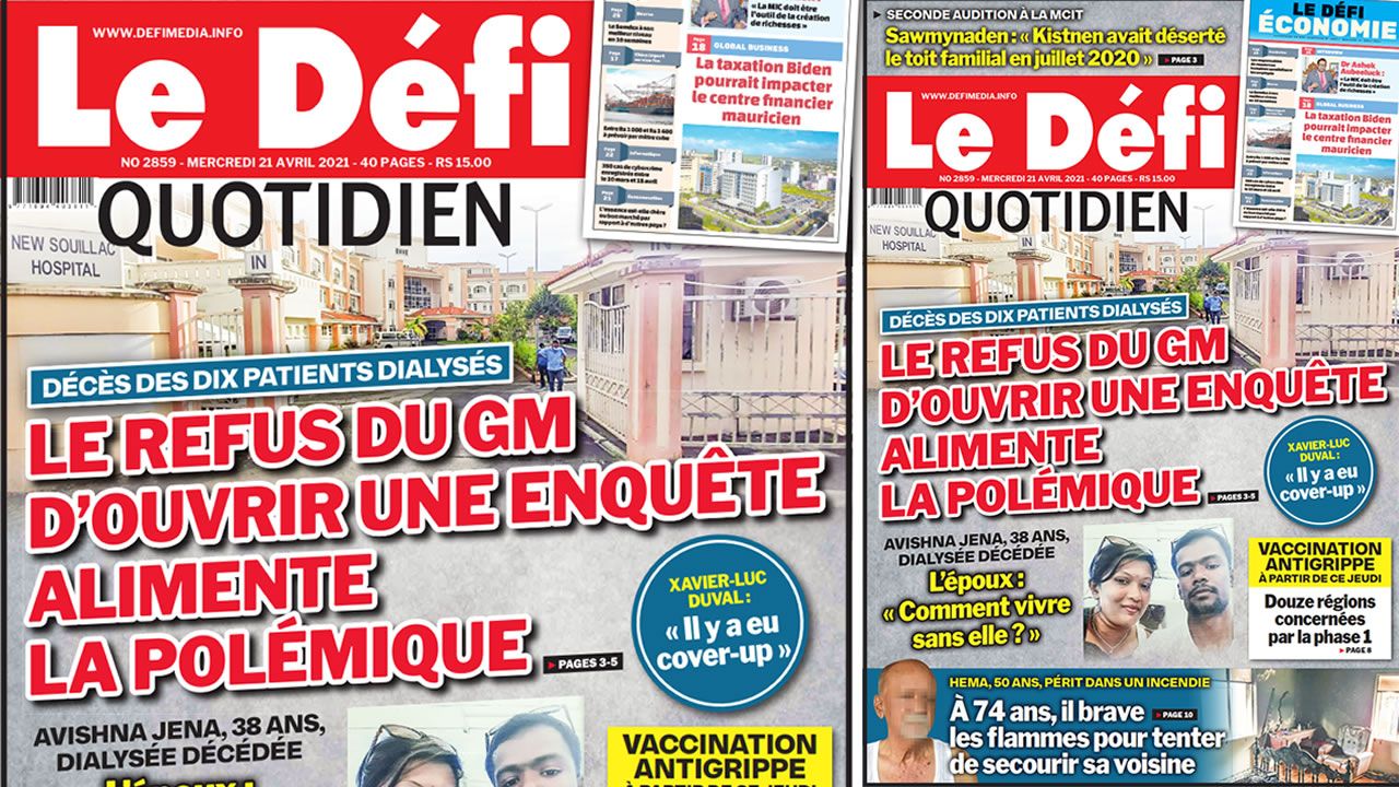 ? Voici la Une du Défi Quotidien. Le journal est en vente à Rs 15 l'exemplaire aux endroits habituels (supermarchés, boutiques, tabagies, superettes). Bonne lecture !