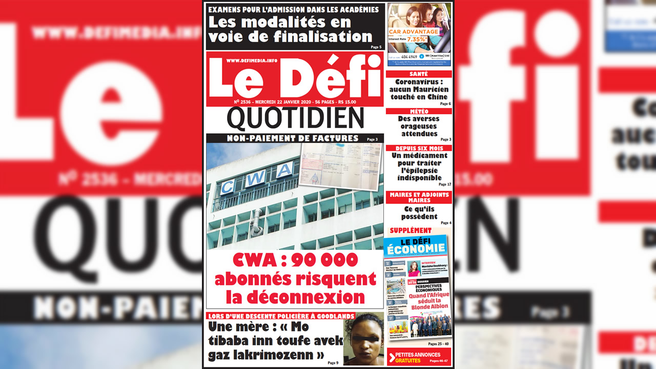 Voici la Une du Défi Quotidien de ce mercredi 22 Janvier 2020