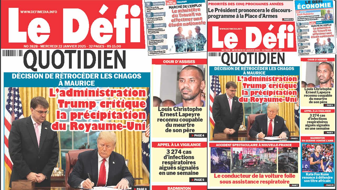? Voici la Une du Défi Quotidien. Le journal est en vente à Rs 15 l'exemplaire aux endroits habituels (supermarchés, boutiques, tabagies, superettes). Bonne lecture !