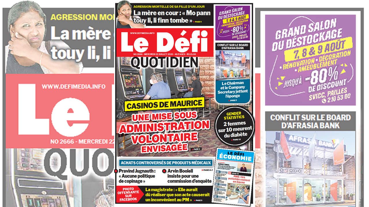 Ces e-Papers sont disponibles depuis le mardi 24 mars 2020 à Rs 10 seulement l’exemplaire et ce, indépendamment de la publication : Le Défi Quotidien et Le Défi Plus.