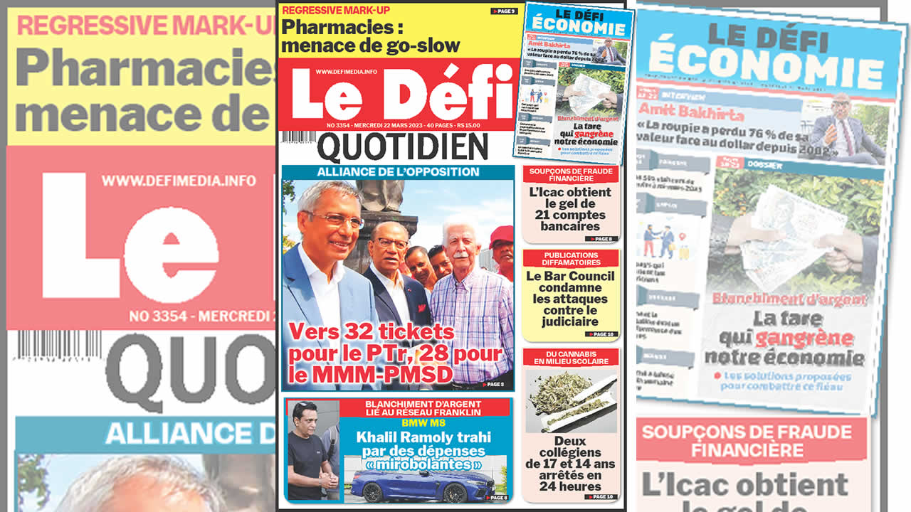 ? Voici la Une du Défi Quotidien. Le journal est en vente à Rs 15 l'exemplaire aux endroits habituels (supermarchés, boutiques, tabagies, superettes). Bonne lecture !