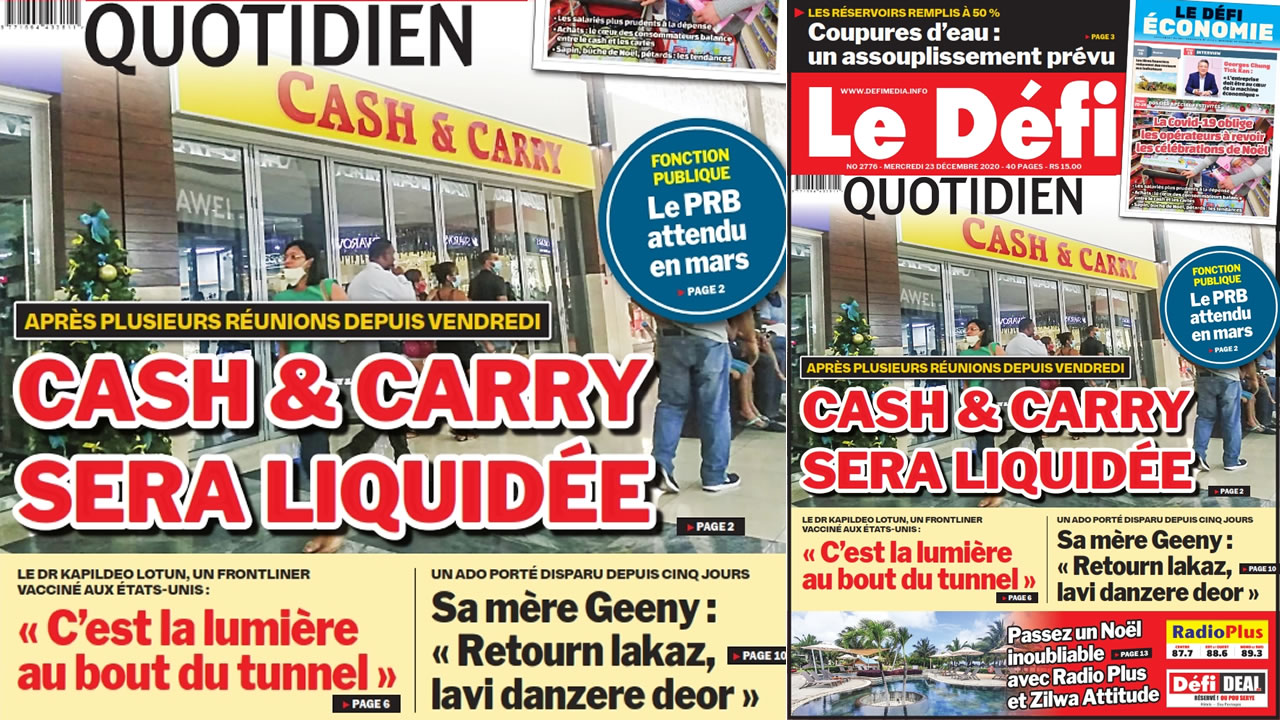 ? Voici la Une du Défi Quotidien. Le journal est en vente à Rs 15 l'exemplaire aux endroits habituels (supermarchés, boutiques, tabagies, superettes). Bonne lecture !