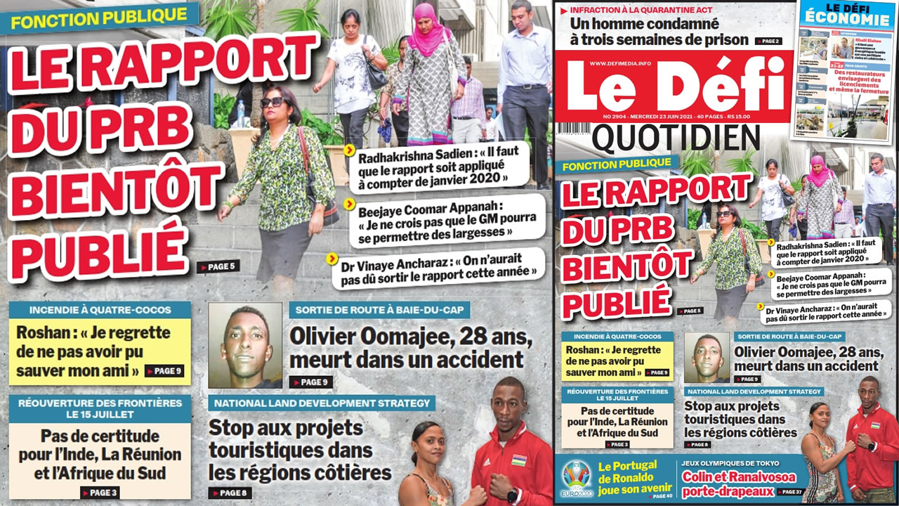 ? Voici la Une du Défi Quotidien. Le journal est en vente à Rs 15 l'exemplaire aux endroits habituels (supermarchés, boutiques, tabagies, superettes). Bonne lecture !