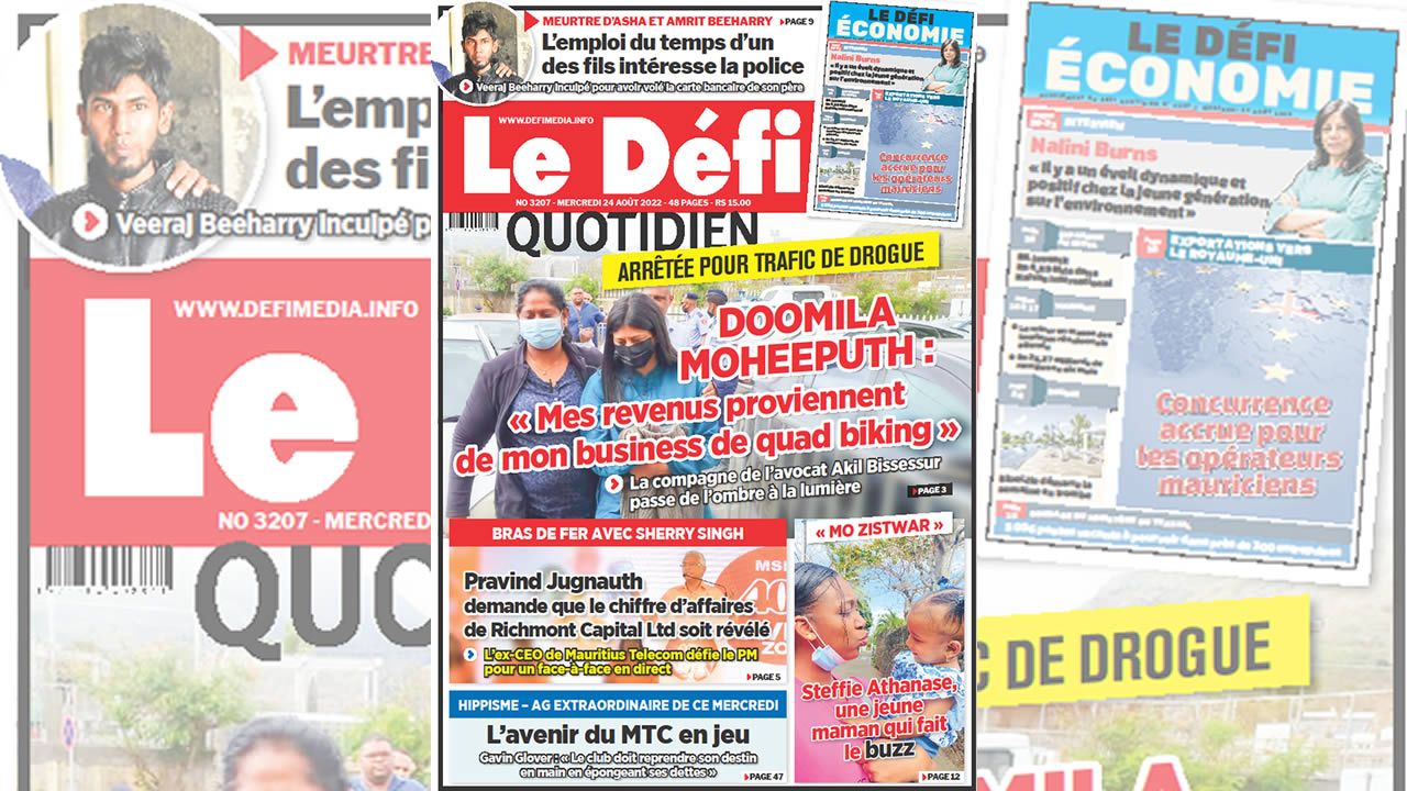 ? Voici la Une du Défi Quotidien. Le journal est en vente à Rs 15 l'exemplaire aux endroits habituels (supermarchés, boutiques, tabagies, superettes). Bonne lecture !
