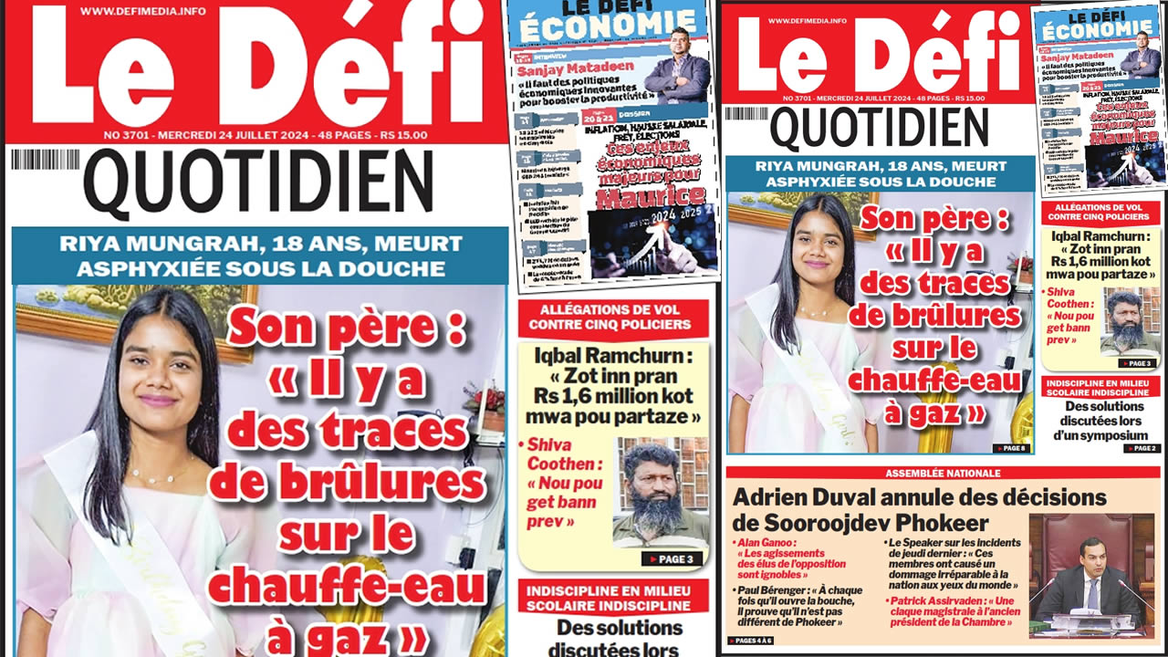 ? Voici la Une du Défi Quotidien. Le journal est en vente à Rs 15 l'exemplaire aux endroits habituels (supermarchés, boutiques, tabagies, superettes). Bonne lecture !