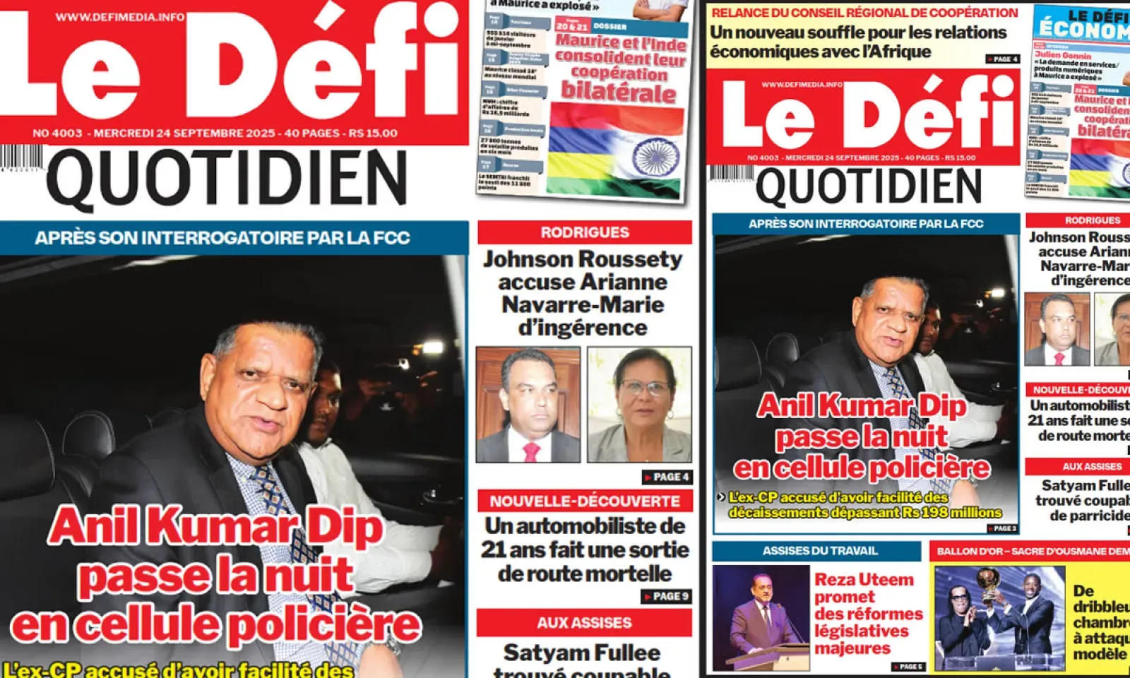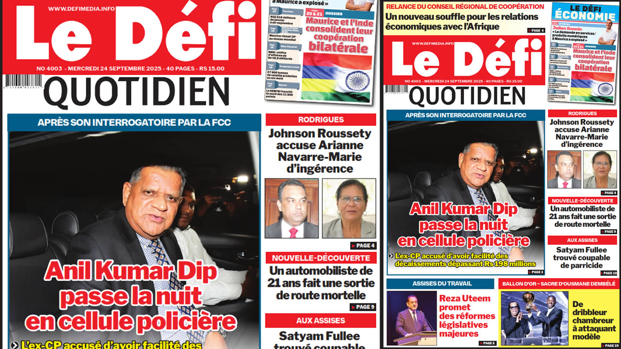 ? Voici la Une du Défi Quotidien. Le journal est en vente à Rs 15 l'exemplaire aux endroits habituels (supermarchés, boutiques, tabagies, superettes). Bonne lecture !