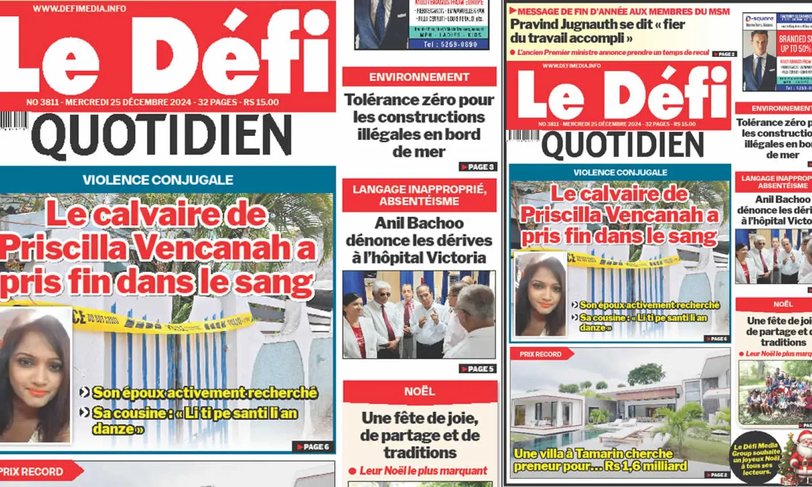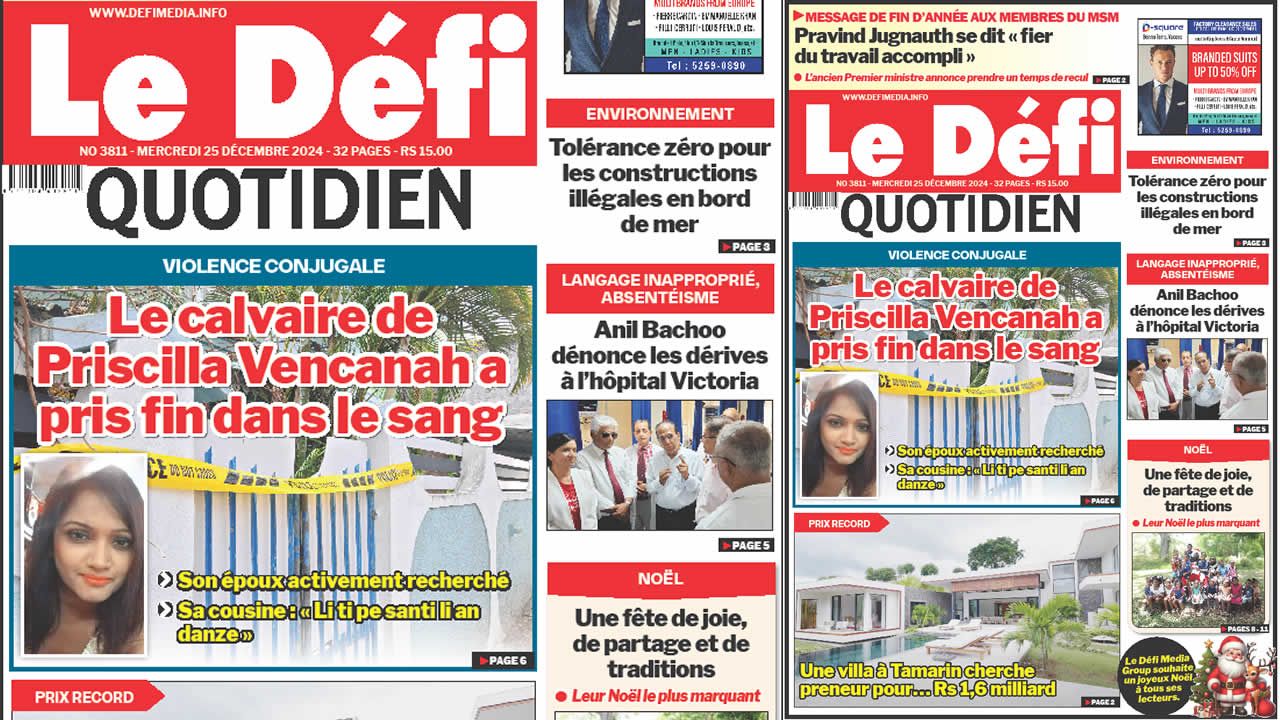 ? Voici la Une du Défi Quotidien. Le journal est en vente à Rs 15 l'exemplaire aux endroits habituels (supermarchés, boutiques, tabagies, superettes). Bonne lecture !