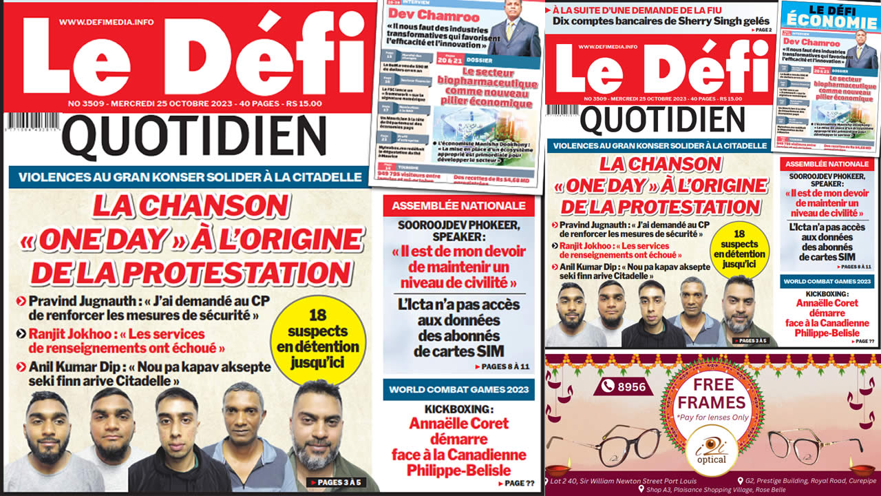 ? Voici la Une du Défi Quotidien. Le journal est en vente à Rs 15 l'exemplaire aux endroits habituels (supermarchés, boutiques, tabagies, superettes). Bonne lecture !