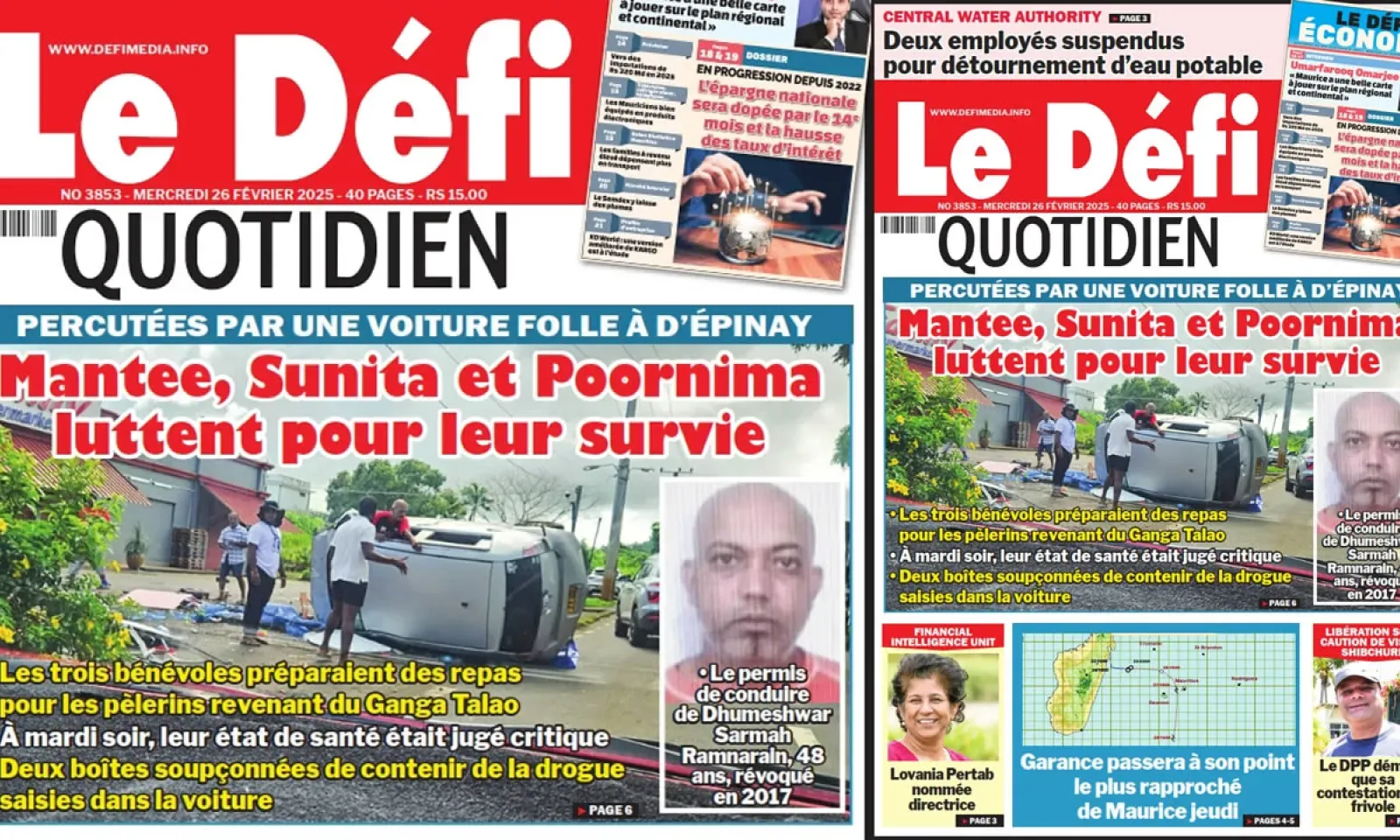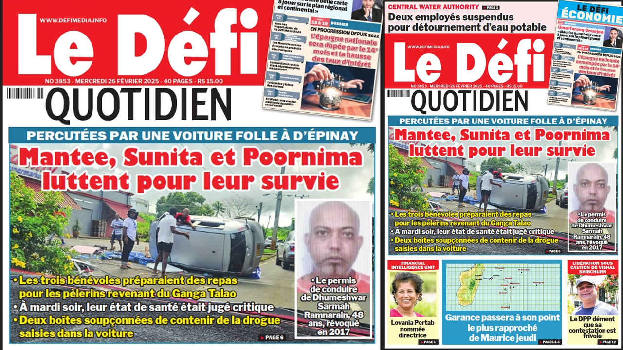 ? Voici la Une du Défi Quotidien. Le journal est en vente à Rs 15 l'exemplaire aux endroits habituels (supermarchés, boutiques, tabagies, superettes). Bonne lecture !