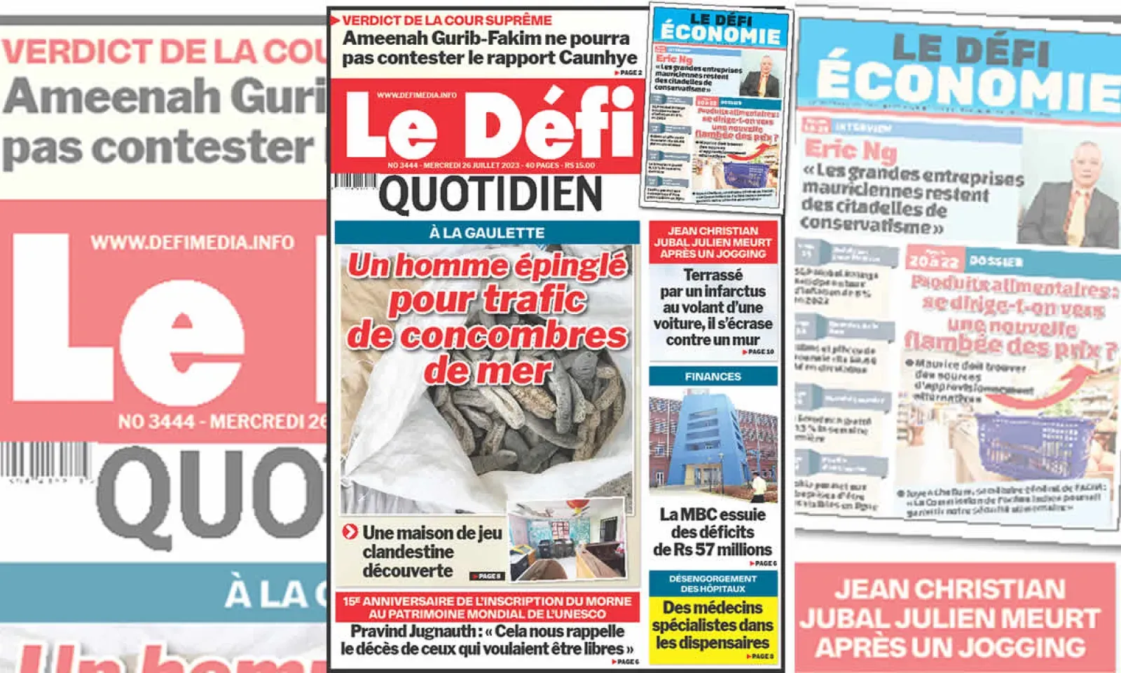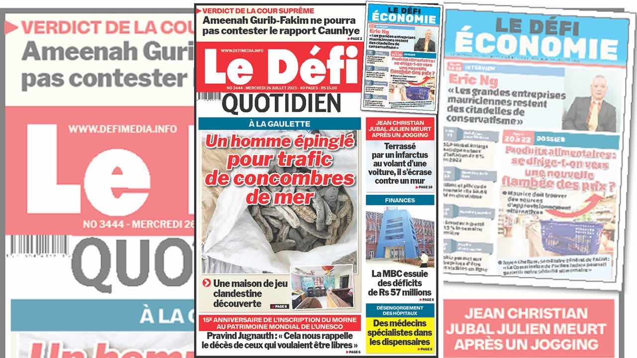 Voici la une du Défi Quotidien de ce Mercredi 26 juillet 2023