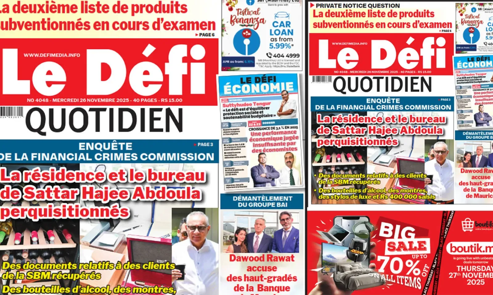 Image Voici la Une du Défi Quotidien. Le journal est en vente à Rs 15 l'exemplaire aux endroits habituels (supermarchés, boutiques, tabagies, superettes). Bonne lecture ! Publicité View the discussion thread.
