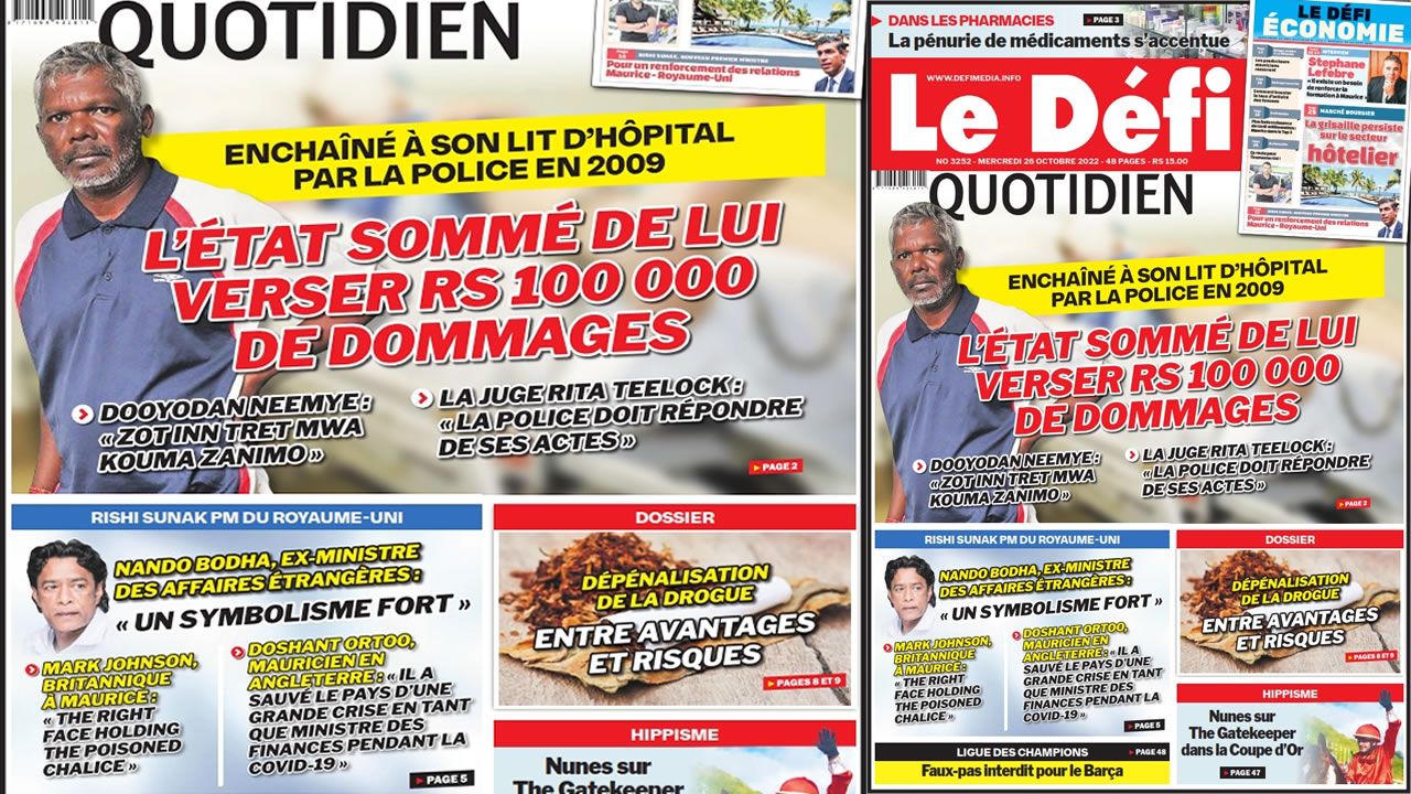 ? Voici la Une du Défi Quotidien. Le journal est en vente à Rs 15 l'exemplaire aux endroits habituels (supermarchés, boutiques, tabagies, superettes). Bonne lecture !