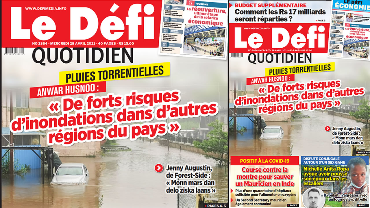 ? Voici la Une du Défi Quotidien. Le journal est en vente à Rs 15 l'exemplaire aux endroits habituels (supermarchés, boutiques, tabagies, superettes). Bonne lecture !