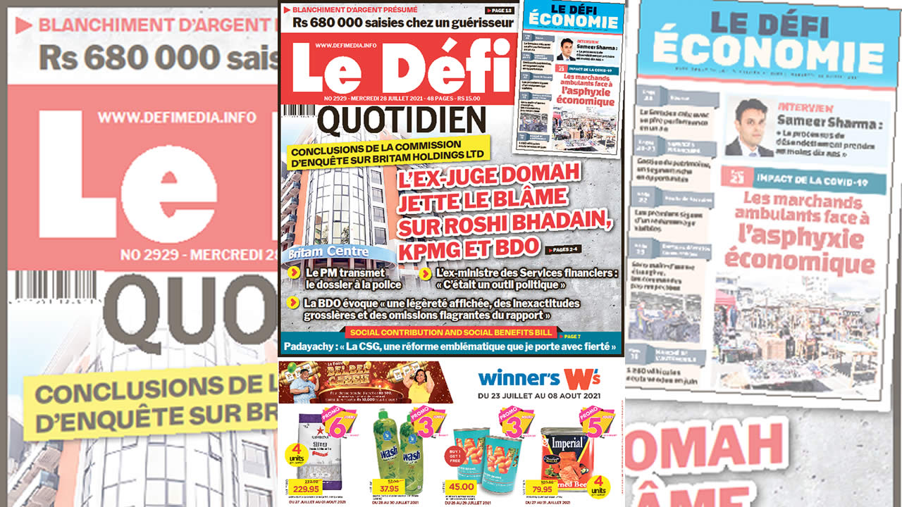 ? Voici la Une du Défi Quotidien. Le journal est en vente à Rs 15 l'exemplaire aux endroits habituels (supermarchés, boutiques, tabagies, superettes). Bonne lecture !