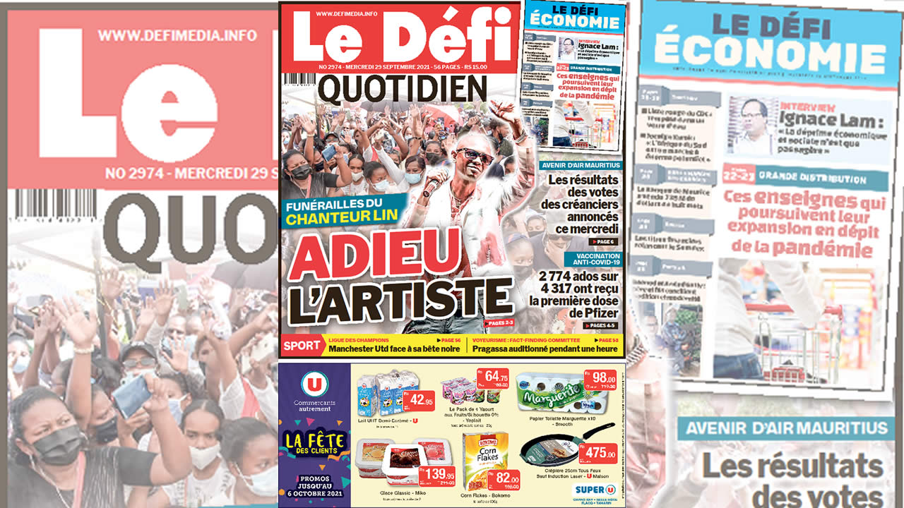 ? Voici la Une du Défi Quotidien. Le journal est en vente à Rs 15 l'exemplaire aux endroits habituels (supermarchés, boutiques, tabagies, superettes). Bonne lecture !