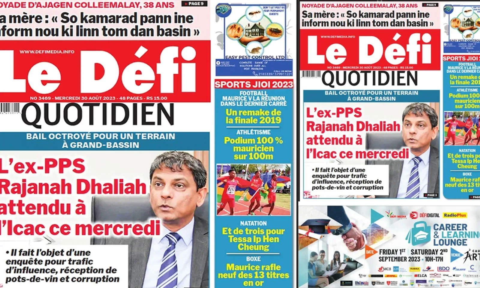 ? Voici la Une du Défi Quotidien. Le journal est en vente à Rs 15 l'exemplaire aux endroits habituels (supermarchés, boutiques, tabagies, superettes). Bonne lecture !