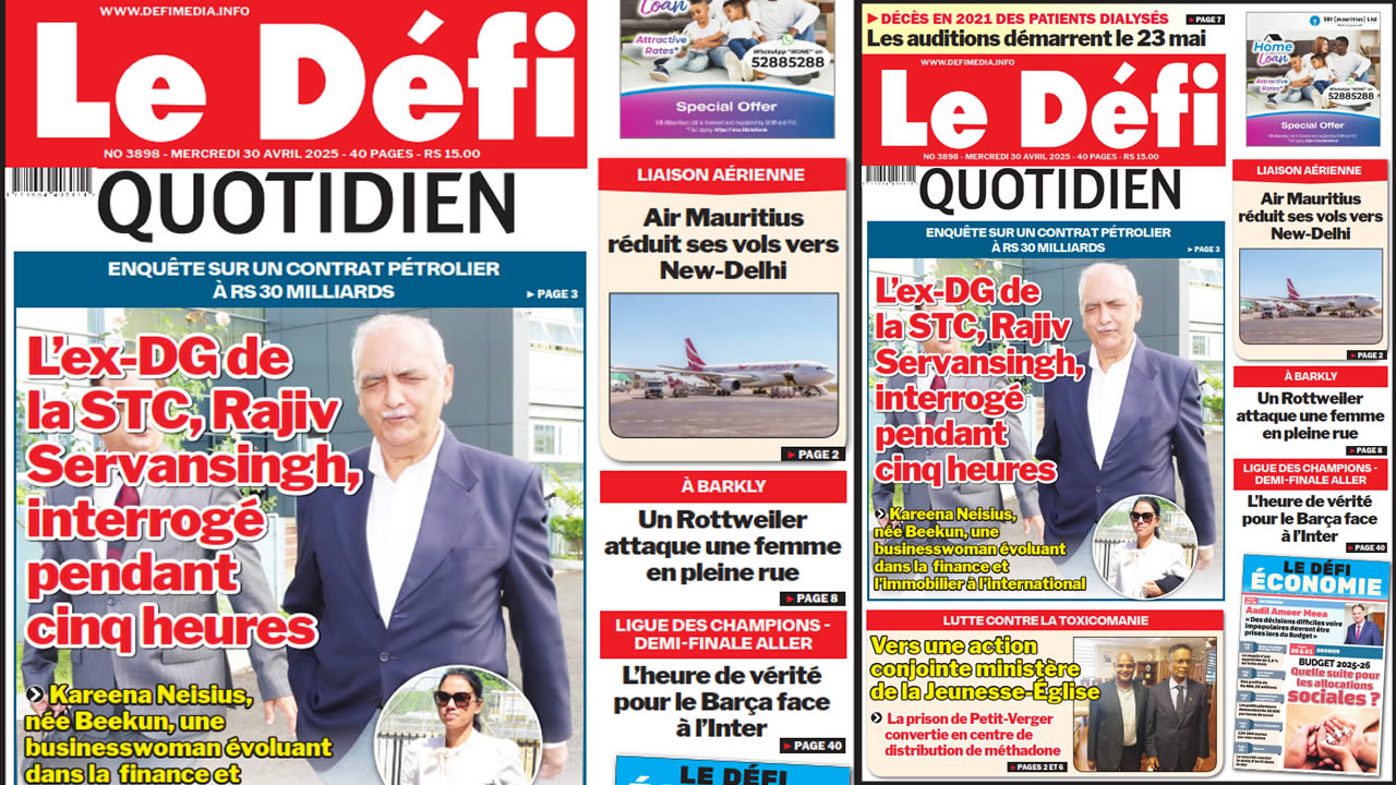 ? Voici la Une du Défi Quotidien. Le journal est en vente à Rs 15 l'exemplaire aux endroits habituels (supermarchés, boutiques, tabagies, superettes). Bonne lecture !