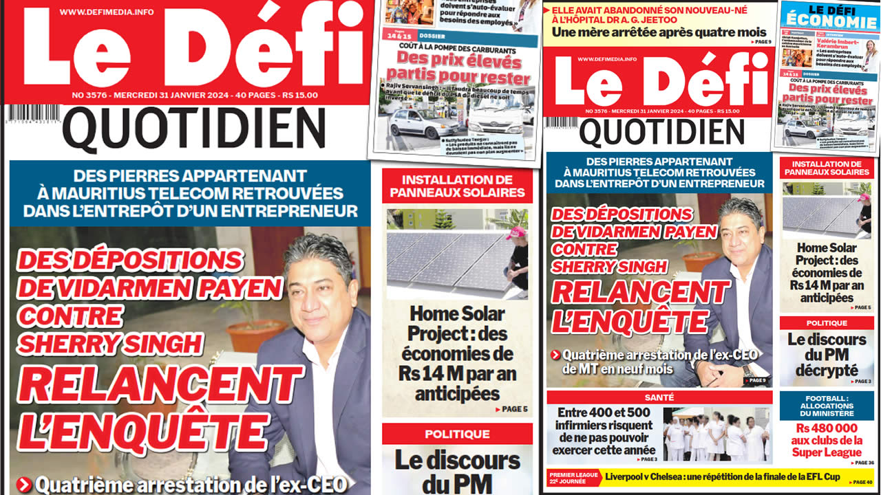 ? Voici la Une du Défi Quotidien. Le journal est en vente à Rs 15 l'exemplaire aux endroits habituels (supermarchés, boutiques, tabagies, superettes). Bonne lecture !
