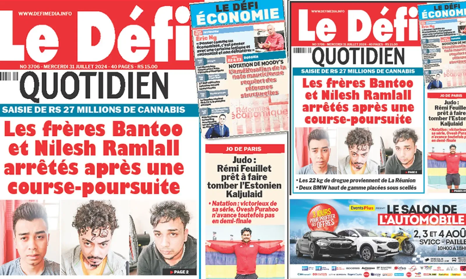 ? Voici la Une du Défi Quotidien. Le journal est en vente à Rs 15 l'exemplaire aux endroits habituels (supermarchés, boutiques, tabagies, superettes). Bonne lecture !