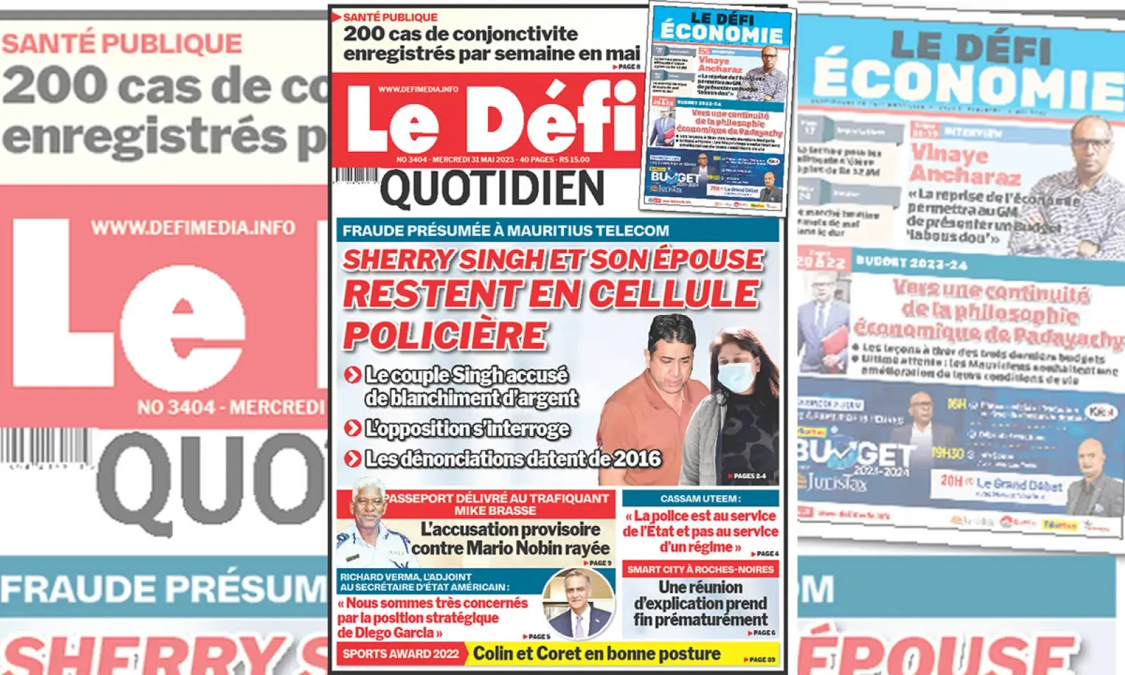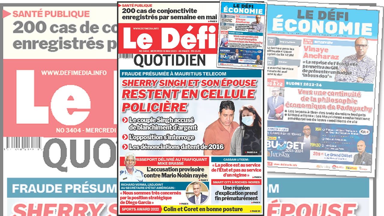 ? Voici la Une du Défi Quotidien. Le journal est en vente à Rs 15 l'exemplaire aux endroits habituels (supermarchés, boutiques, tabagies, superettes). Bonne lecture !