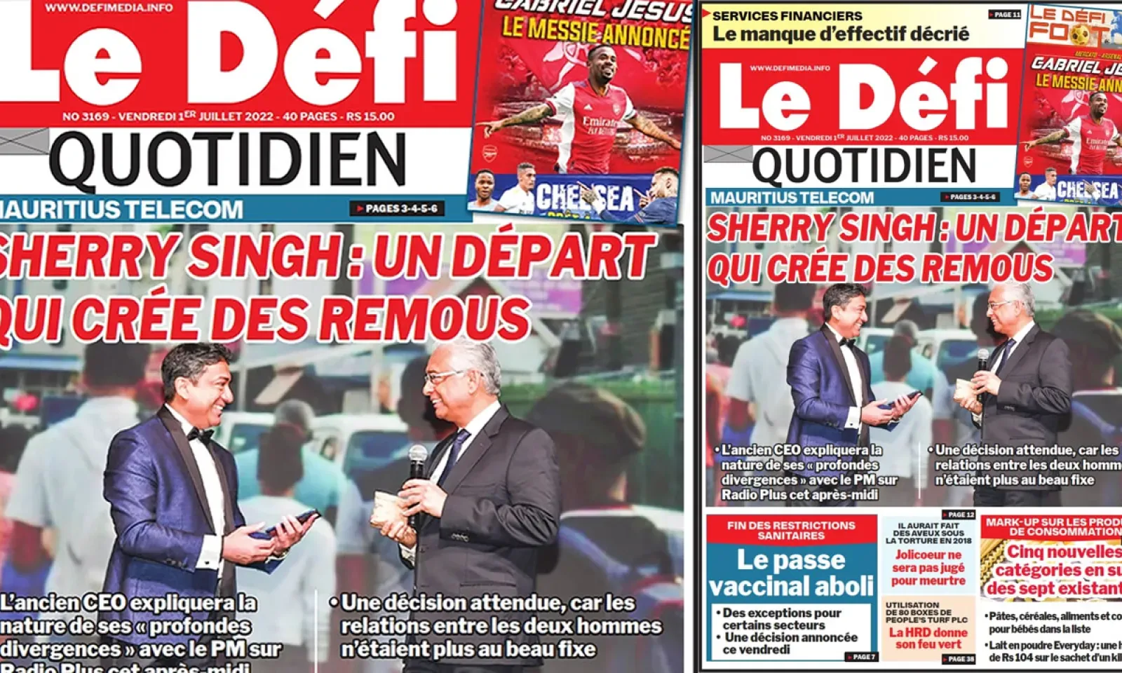 ? Voici la Une du Défi Quotidien. Le journal est en vente à Rs 15 l'exemplaire aux endroits habituels (supermarchés, boutiques, tabagies, superettes). Bonne lecture !