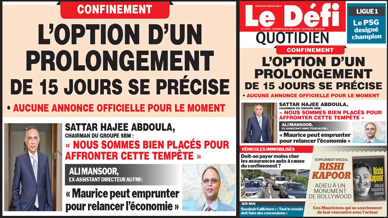 Ces e-Papers sont disponibles depuis le mardi 24 mars 2020 à Rs 10 seulement l’exemplaire et ce, indépendamment de la publication : Le Défi Quotidien, Le Défi Plus et Le Dimanche-L’Hebdo.