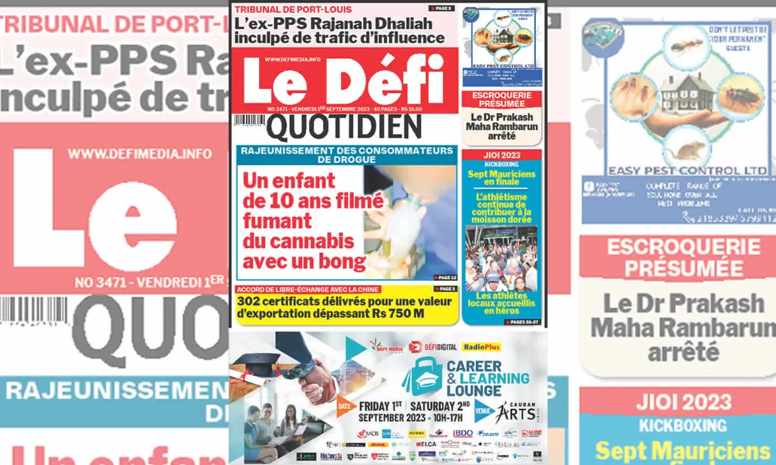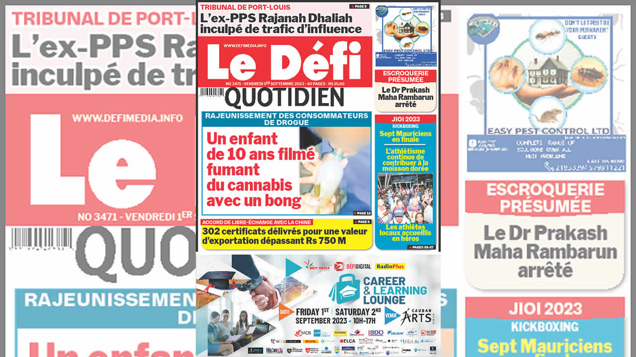 ? Voici la Une du Défi Quotidien. Le journal est en vente à Rs 15 l'exemplaire aux endroits habituels (supermarchés, boutiques, tabagies, superettes). Bonne lecture !