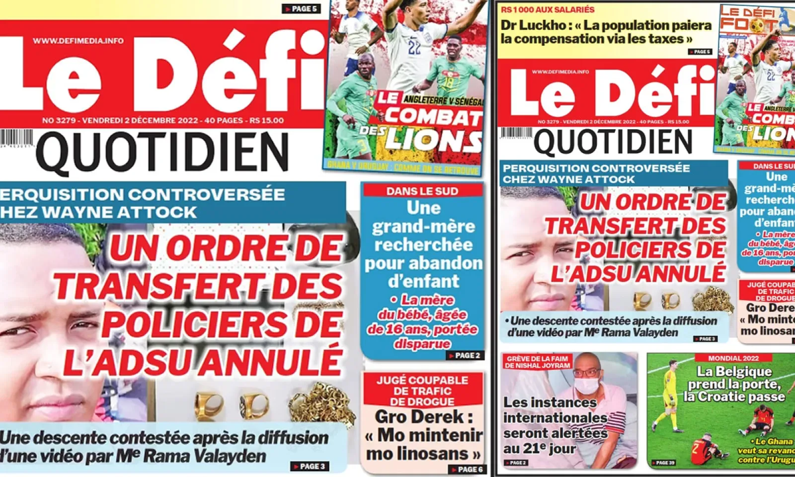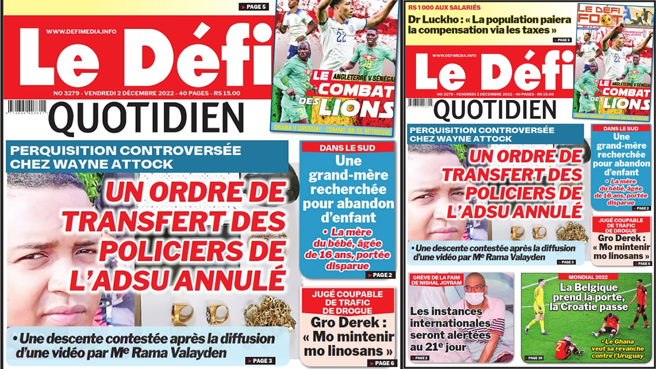 Voici la une du Défi Quotidien de ce vendredi 02 Décembre 2022