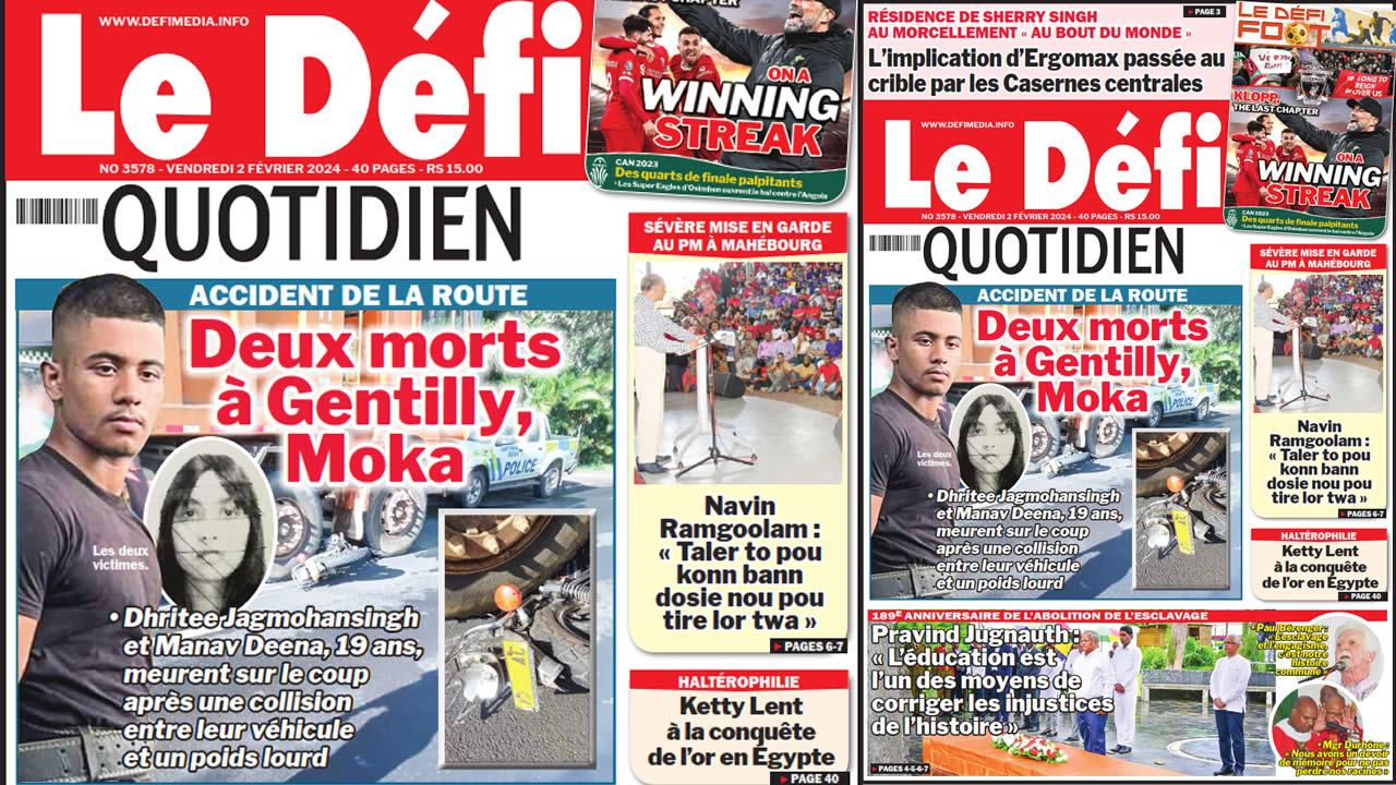 ? Voici la Une du Défi Quotidien. Le journal est en vente à Rs 15 l'exemplaire aux endroits habituels (supermarchés, boutiques, tabagies, superettes). Bonne lecture !
