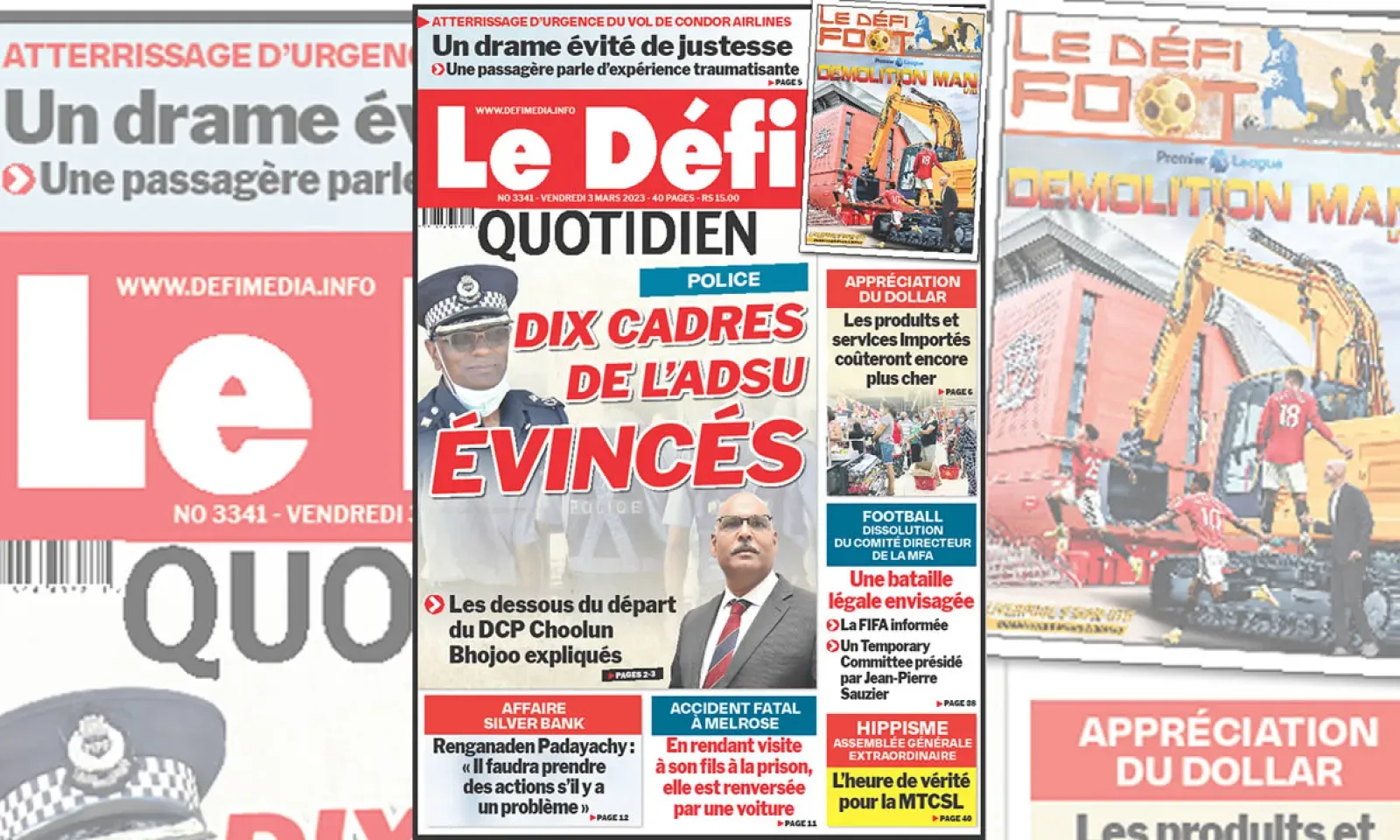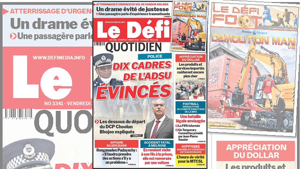 ? Voici la Une du Défi Quotidien. Le journal est en vente à Rs 15 l'exemplaire aux endroits habituels (supermarchés, boutiques, tabagies, superettes). Bonne lecture !