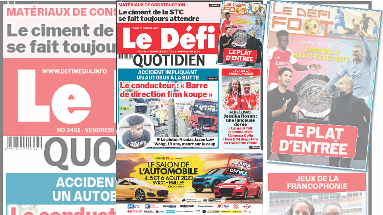Voici la une du Défi Quotidien de ce Vendredi 04 Août 2023